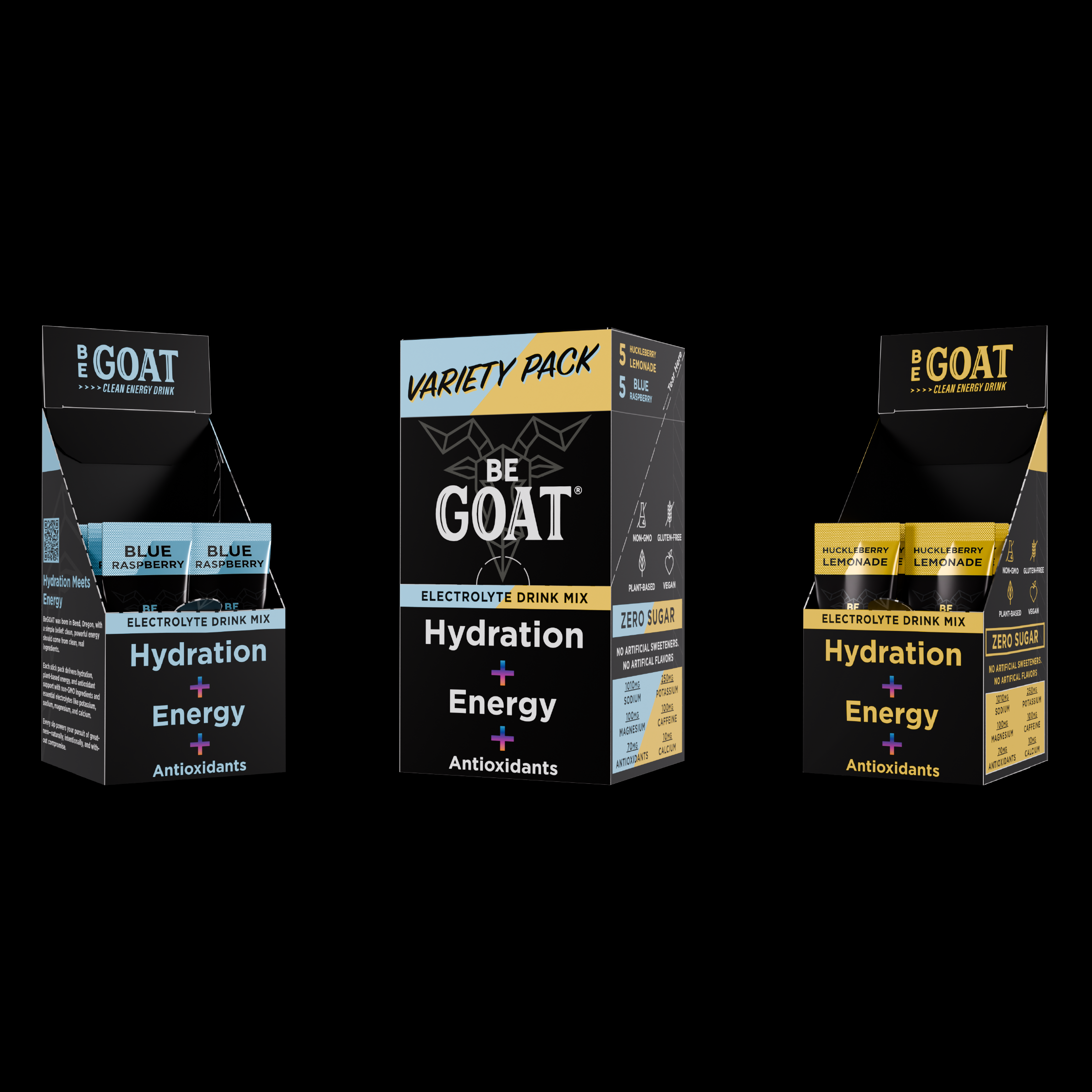 BeGOAT Stick Packs combine hydration, clean energy, and antioxidant support in one easy-to-mix serving. Each stick delivers electrolytes, plant-based caffeine, and antioxidants to support performance, focus, and hydration without sugar or artificial ingredients.